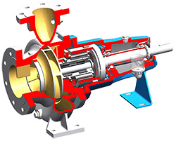 Centrifugal pumps are driven by a motor through a shaft which have to penetrate into the pump chamber. In order to keep the products inside, a seal is needed. This seal often wears off and the product leaks. This is problematic if the product leaked is poisonous or is flammable. Arasains Indonesia supplies the Johnson CombiMag, a centrifugal pump driven by a magnetic coupling. This makes the pump 100% leak free with a long life cycle and reduced maintenance cost. This pump uses the Johnson famous high efficiency impeller. It is suitable for slightly contminated liquids without abrasive or magnetic particles. Maintenance is easy with back pull out principle. Magnets used are Samarium Cobalt high performance magnets. The containment can is made of Hastelloy for limited eddy current losses. Heating jackets can be supplied. Lubrication can be specified for oil or grease. Temperature monitoring with PT 100 are available. The pump impeller has liquid lubricated silicon carbide internal bearings with hardened wear plate.