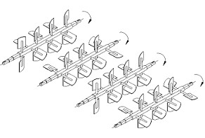 • Mixing and conveying of raw materials are performed simultaneously by rotation of paddles.