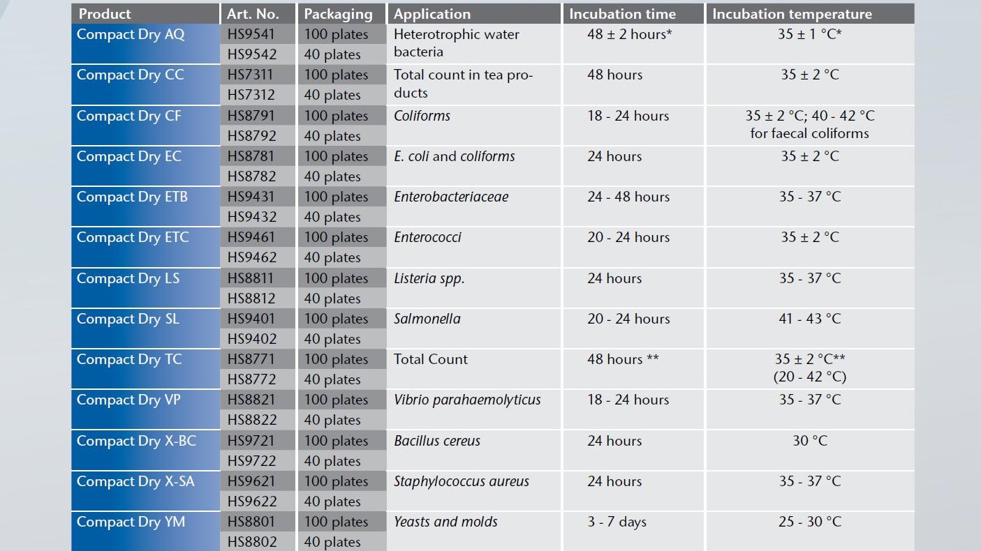 It is a ready-to-use microbiological test method with a broad variety of different testing parameters and contains modified standard media and chromogenic substrates that ease up identification and enumeration of grown microorganisms, providing maximum efficiency in a short time.