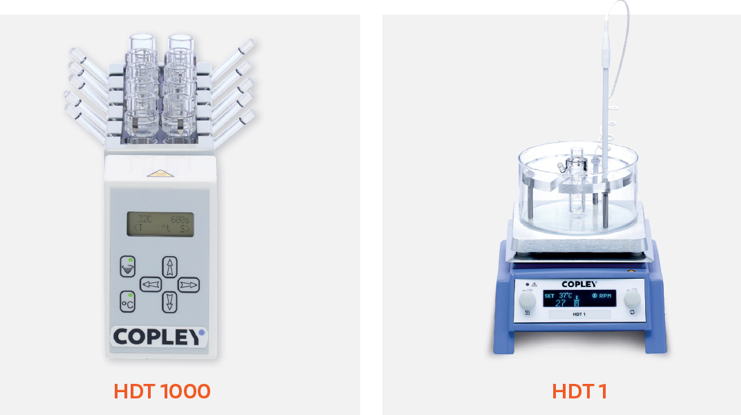 With precision heating and integrated powerful magnetic stirrers, Copley’s HDT 1 (1 single diffusion cell) and compact HDT 1000 (up to 10 diffusion cells) test system offers full control over all test parameters and has become the benchmark vertical diffusion cell test system for many labs.