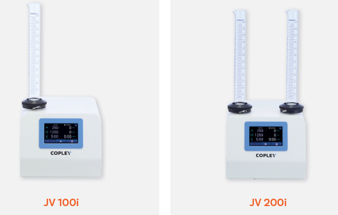 Available with either one (JV 100i) or two (JV 200i) test stations, the JVi tapped density series provides detailed reports, including Hausner ratio calculations for a wide range of industrial standards.