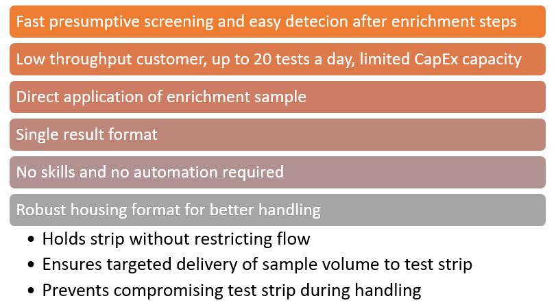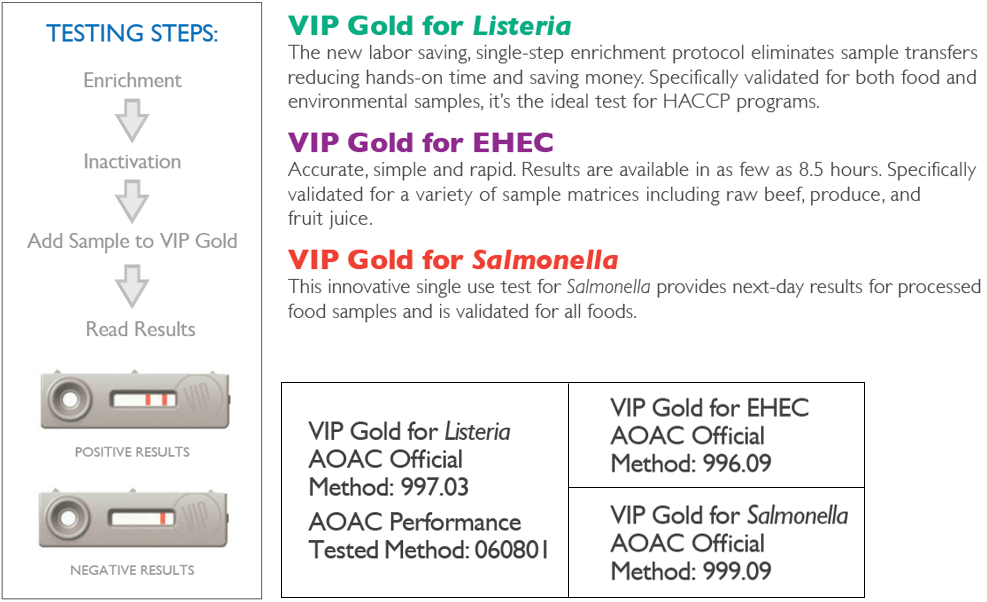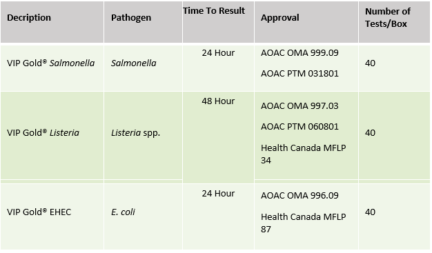 A single-step visual immunoassay for the detection of pathogen in various applications. Each device contains a proprietary reagent system, which forms a visually apparent antigen-antibody-chromogen complex if pathogen is present. The test is intended for use by laboratory personnel with appropriate microbiology training.